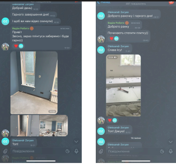 де команда щодня надсилає фото- та відеозвіти з ремонту.